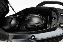 Amplio maletero de perfil casi rectangular que permite guardar multitud de objetos (como un maletín portafolios o de ordenador portátil, además de muchos otros objetos personales. Espacio para 1 casco integral o 2 cascos Jet.